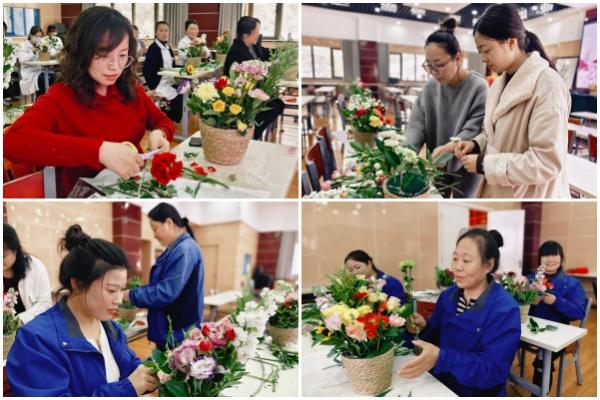 随后开展的花艺教学环节中,专业花艺师讲解了花材识别、色彩搭配、造型构图等基础知识,并现场演示插花步骤。在花艺师指导下,女职工们动手实践,将紫罗兰、康乃馨、洋桔梗等花材巧妙搭配,制作出各具特色的花艺作品。现场花香馥郁、气氛轻松,大家在创作中交流心得、舒缓压力。